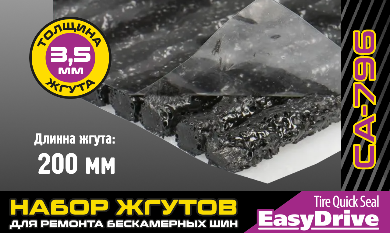 Tire Quick Seal EASY DRIVE - набор эластичных жгутов для ремонта бескамерных шин. Применяется для пополнения наборов CityUP Easy Drive СА-787, СА-789, СА-791, СА-793.