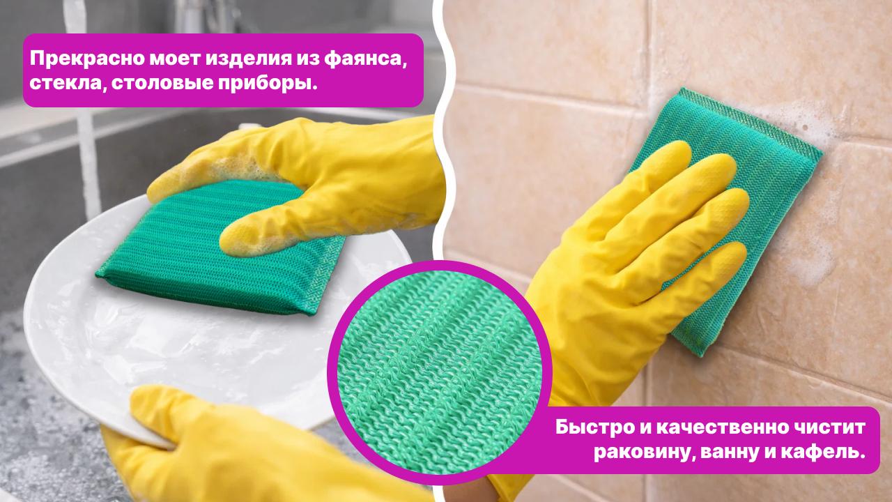 Имеет высочайшие потребительские свойства за счет тонких волокон полимера и плотного поролона. Комбинация микроволокна и поролона удерживает внутри губки нанесенное средство для мытья посуды и дозированно выдает его наружу.