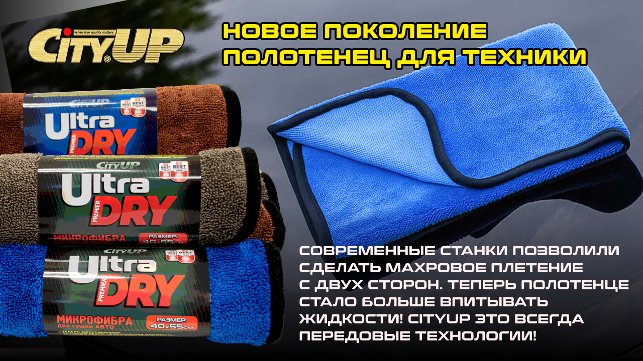 Микрофибра для сушки авто. Высокие технологии термохимического расщепления микроволокна CityUP позволяют добиться рекордного 7- ми кратного водопоглощения для идеально качественной сушки лакокрасочного покрытия, стекол, зеркал.